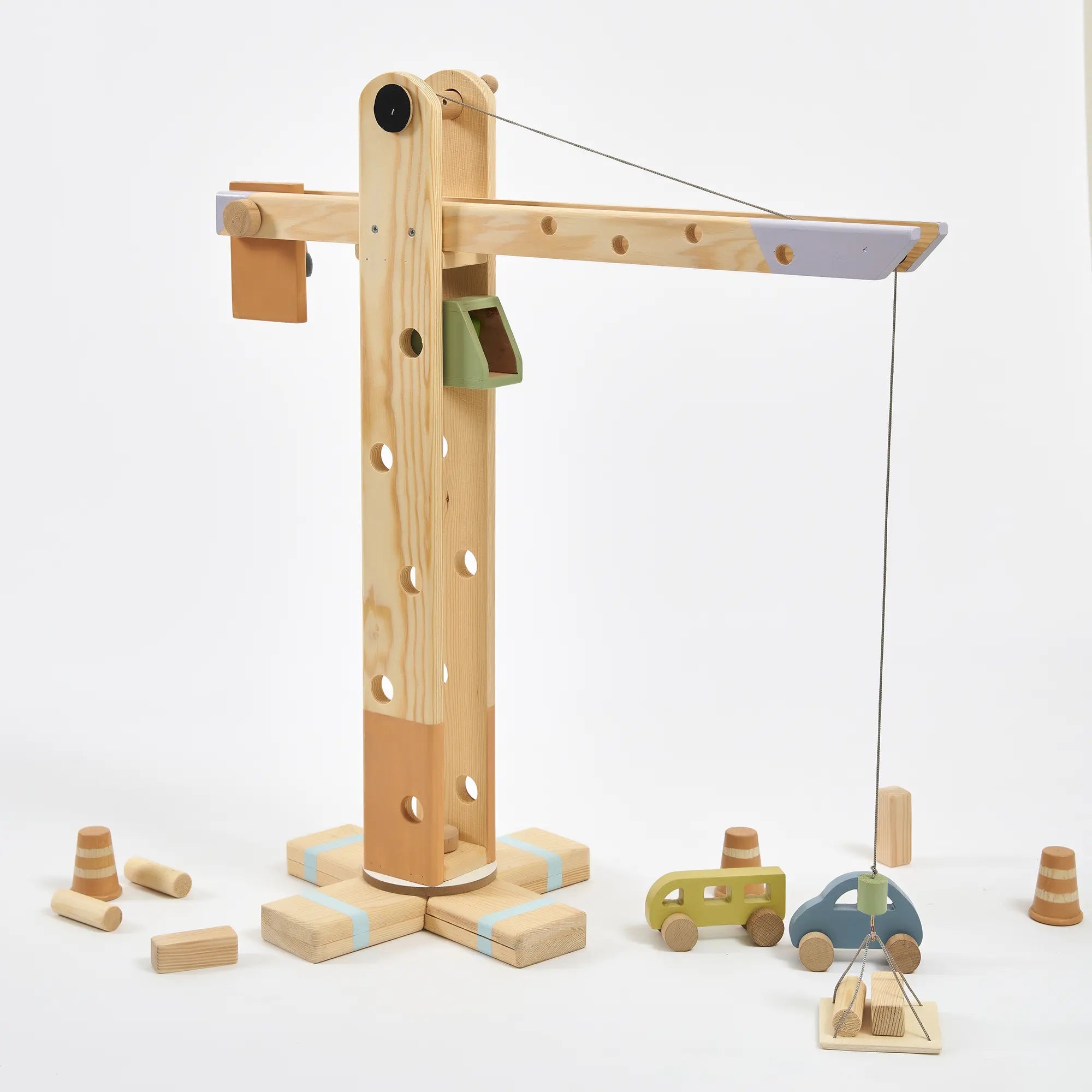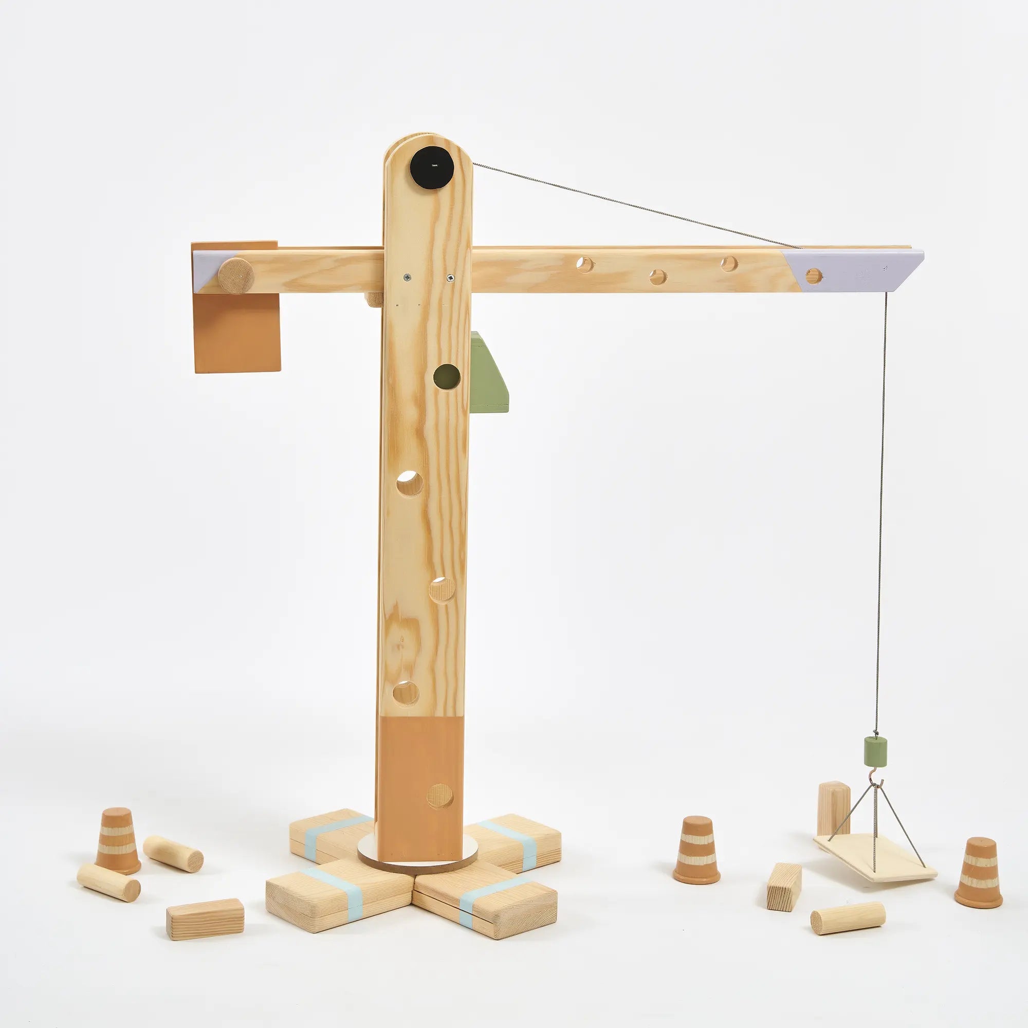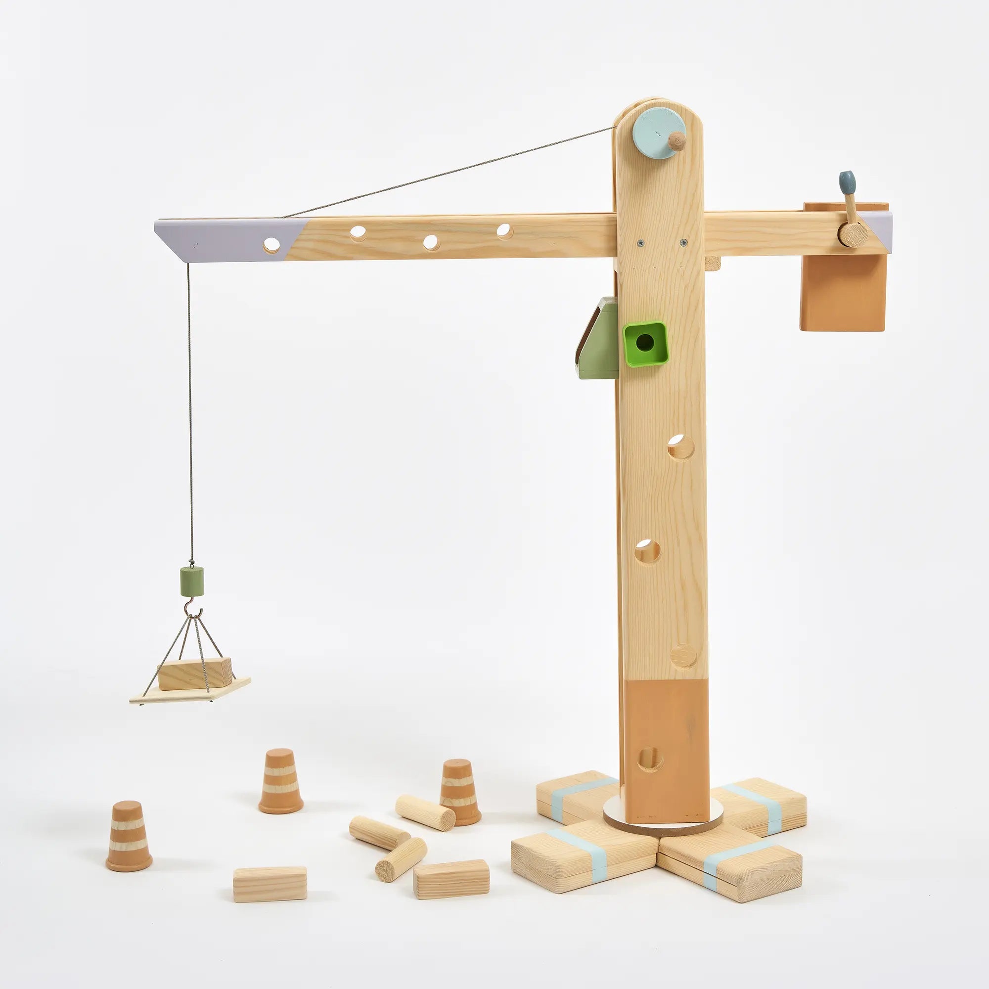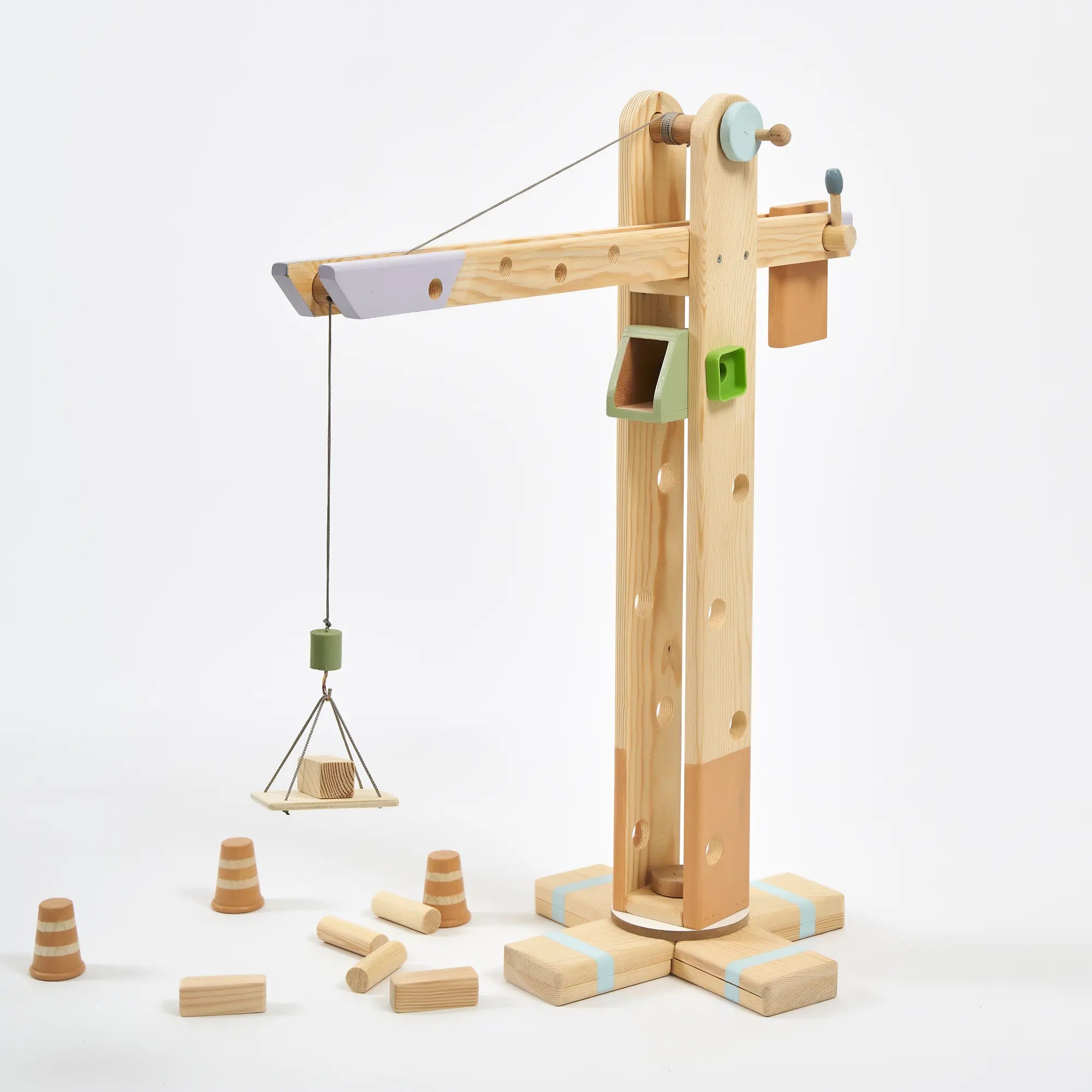 360° Dönebilen Ahşap Vinç Oyuncak (Pastel)