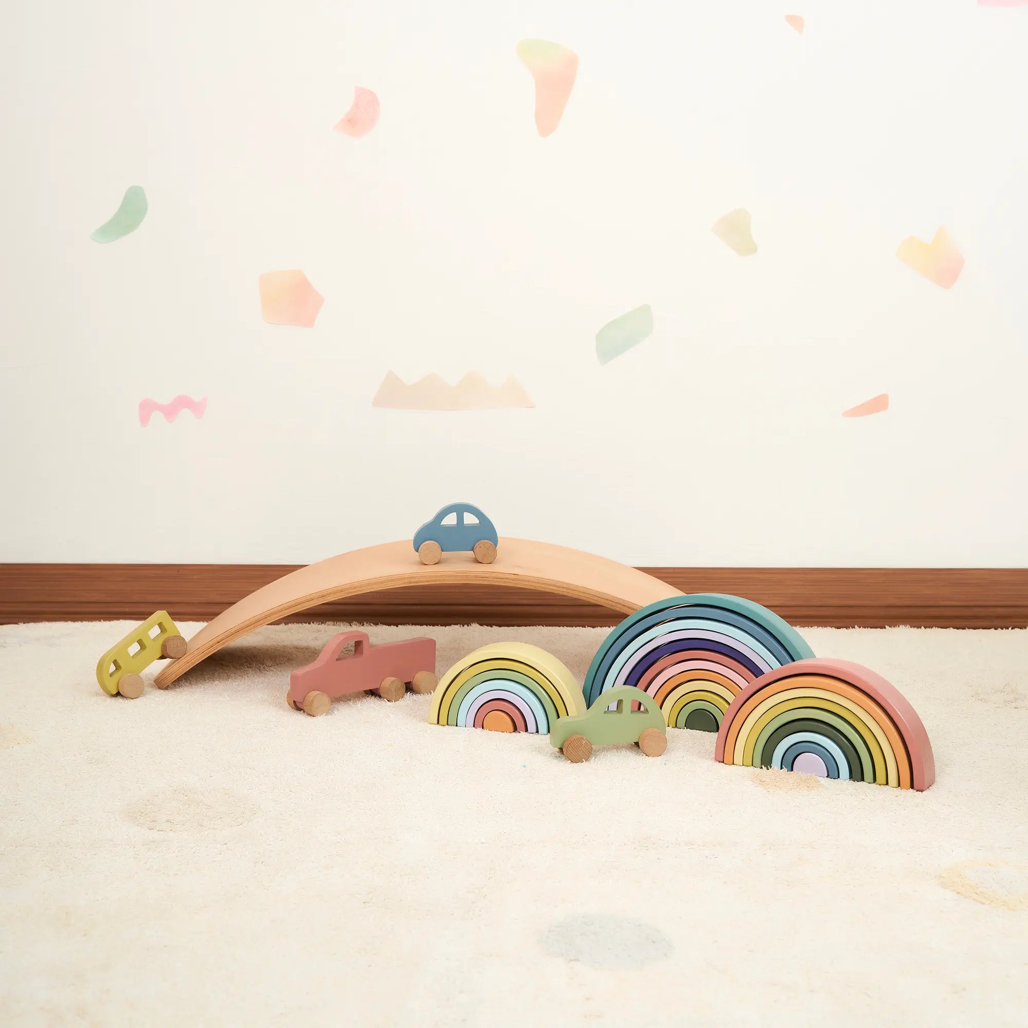 Hayır, sivri ya da keskin hiçbir detay yok. Tüm ürünlerimizin kenarları özenle zımparalanır, köşeler yumuşatılır. Sertlik değil, yumuşaklık hissi verir — tıpkı bir çocuğun ihtiyacı olan gibi.