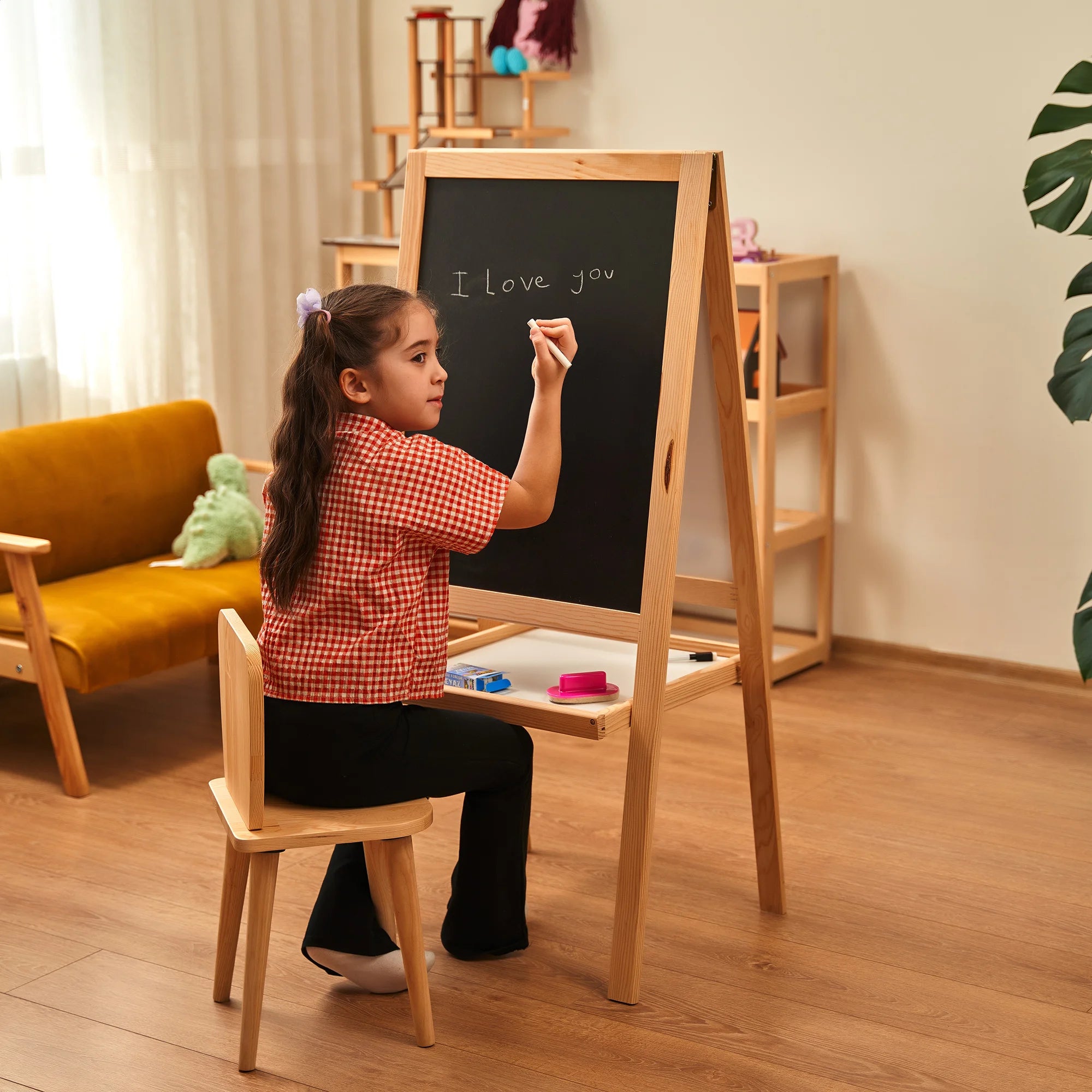 Çift Taraflı Ayaklı Ahşap Yazı Tahtası